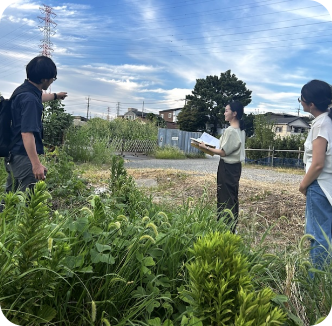 その土地や周辺環境を丁寧に調査します。具体的には、建設予定のエリアがどのような特性を持つのか、実際に近傍を歩き、自分たちが見たことや感じたことを持ち帰ることはもちろん、実際そのエリアに建物を構える人の声を聴くことでわかるその街の内情を、プランに落とし込みます。また、データの分析では周辺の家賃相場や経済環境、地価変動などを調査し、プランを作成する上で参考にすることで、プランを現実的なものにします。