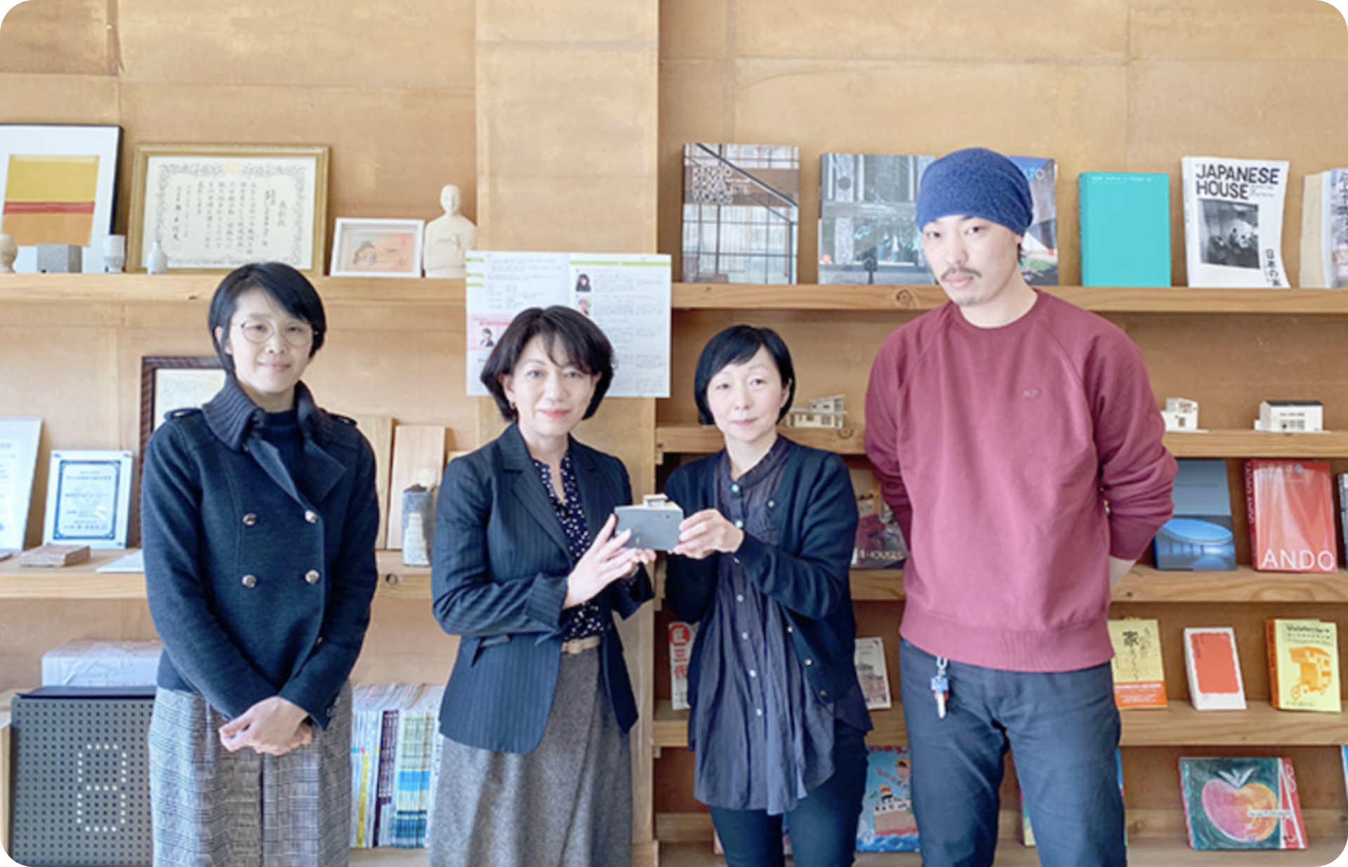 見学ツアーを開催すると、たちまち多くのお方に訪れていただきました。中でも大変気に入ってくださった買主様へと無事に引き渡すことができました。最後は本社で設計当時の模型を囲み、記念撮影をしました。それはまさにお家のバトンパスを見た瞬間でした。